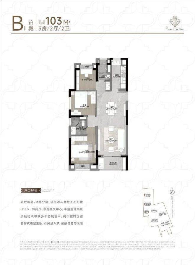 The construction area is approximately 94-106 square meters for 2-3 bedrooms. The price is based on the approved price of 125,000 yuan per square meter in the first phase, and the entry threshold is only over 9 million yuan.