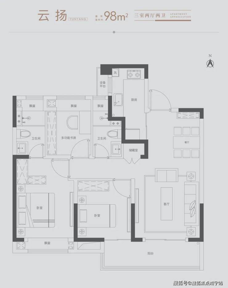 雅致三房:满足三口之家所需,北向房间可改造书房,理想生活一步到位
