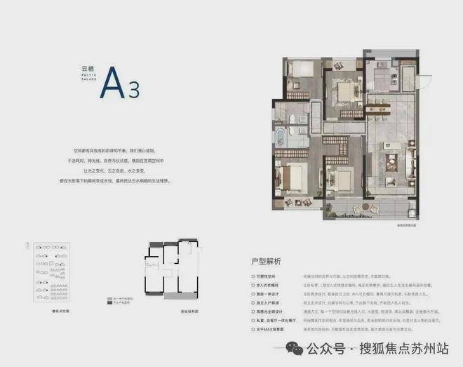 4开间朝南格局,相比平层增加约30%采光接触面积,采光面积更大;