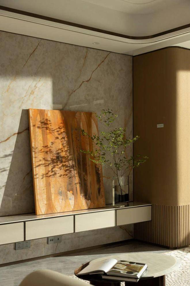 样板房的整体用材和工艺也很有惊喜,样板房用到了不少的奢石及复杂工艺。