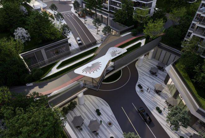 l两境:跃城南北地块做了不同的景观主题,中间由一个空中天桥连接,独立又融合,并且根据尺度的不同,带来动静相宜的主题设计,极为人性化。