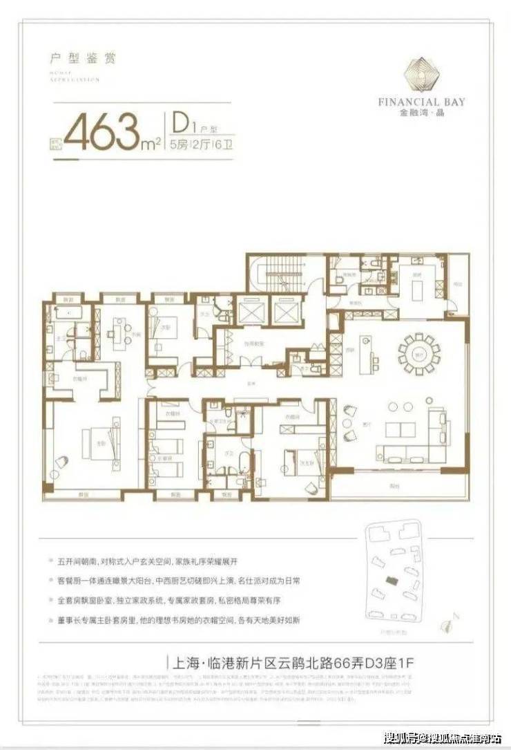 只有超强魄力,才为临港留下一个足以传世的大宅。这套建面约325㎡样板房,足以窥见开发商对尺度的追求。5房3厅5卫准全套房奢华设计,让至少三代人都能在此住得更好,生活得更好。
