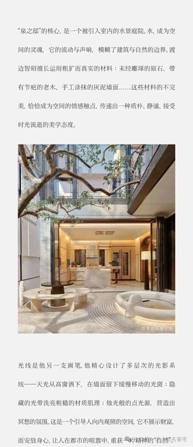 - **户型设计**:主力户型为约300-500㎡合院别墅,103栋户型均不重复,实现“一户一定制”。390㎡“泉之邸”以水景天窗为亮点,地下空间挑高6米,配备垂直挑空玻璃壁炉;顶层主卧挑高3.8米,配备双人衣帽间与双台盆卫浴,兼顾私密性与功能性。