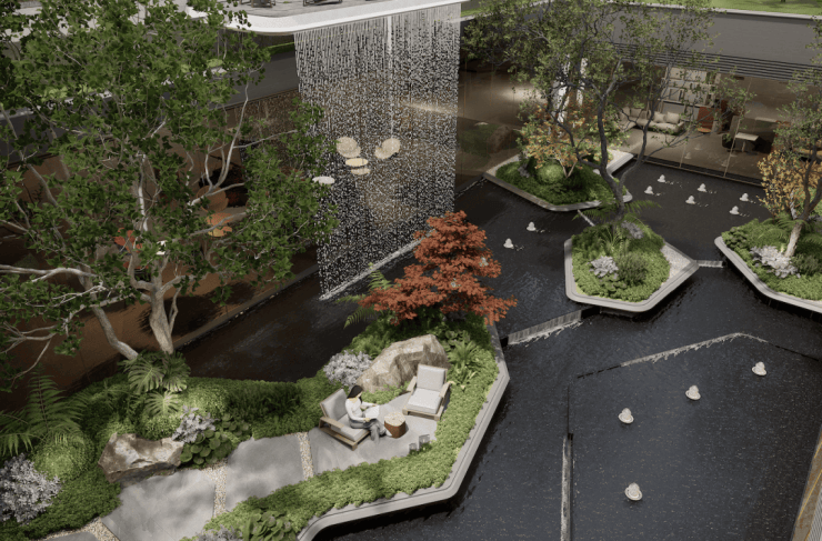 为匹配高净值圈层的社交与休闲需求,项目打造约2000㎡公园会所,同时还巧妙将会所隐于公园地下.