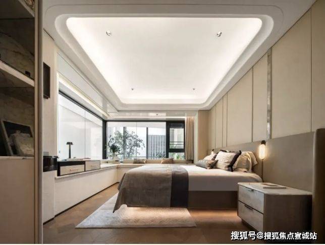 其二,大主卧带约270°飘窗,市面罕见,秒杀同级紧凑四房主卧的舒适度、采光和视野。