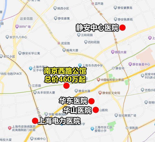 项目步行距离至上海复旦大学附属华东医院(三级甲等综合性医院)约320m ;上海复旦大学附属华山医院(三级乙等综合性医院)约600m;上海电力医院约1km