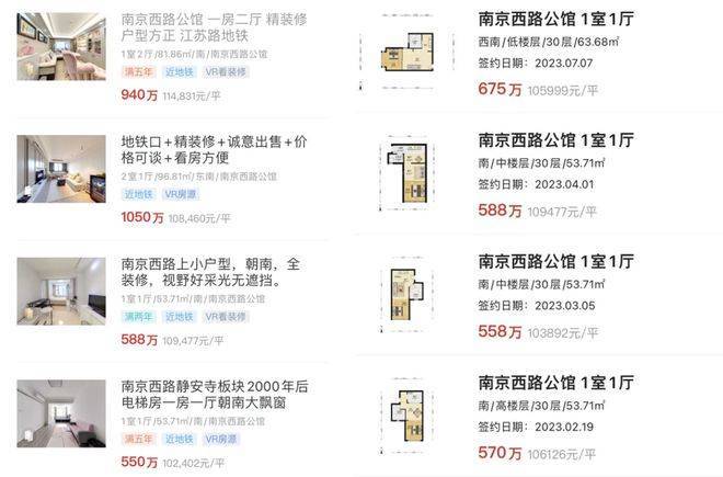 根据链家网显示,南京西路公馆同小区的挂牌单价均在10万以上,成交价总价在600万左右