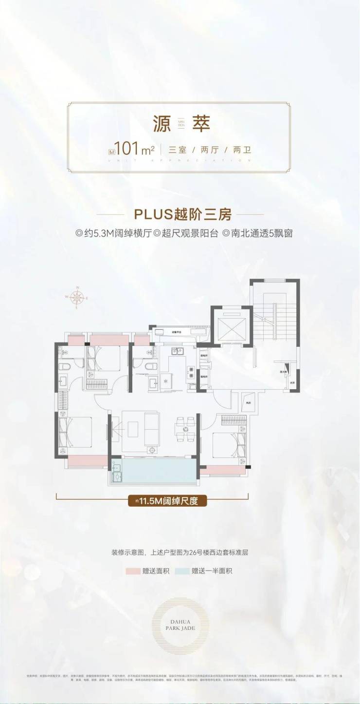 建面约101㎡越阶三房