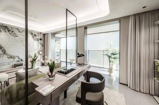 像空调新风地暖“豪宅三大件”齐备,比如中央空调甄选东芝品牌;厨具方面,采用方太的蒸烤一体机、空调油烟机,内嵌冰箱甄选卡萨帝品牌;客厅岩板背景墙也是交付标准;