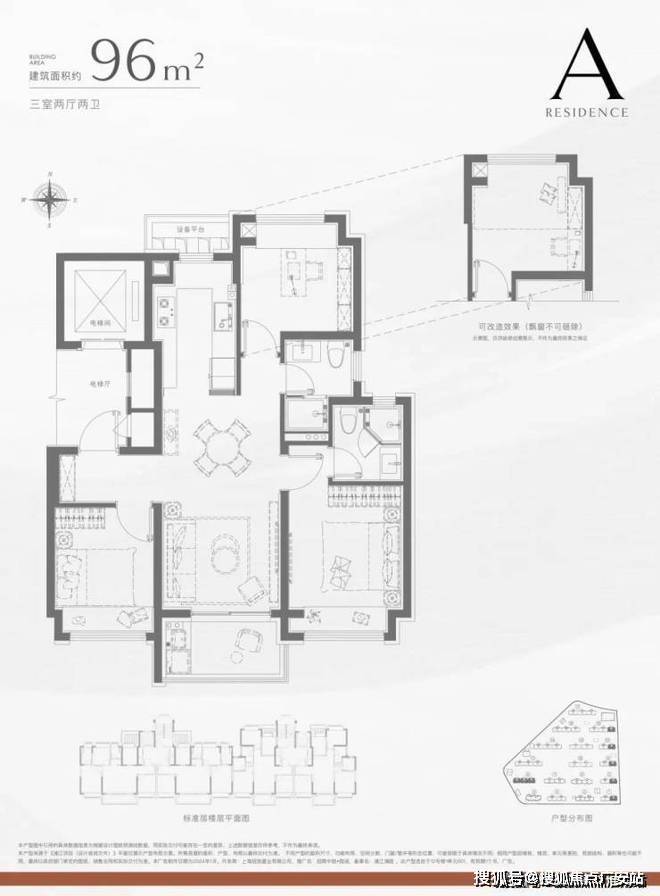 ① 建筑面积约96㎡3房 经典飞机户型 精致进阶