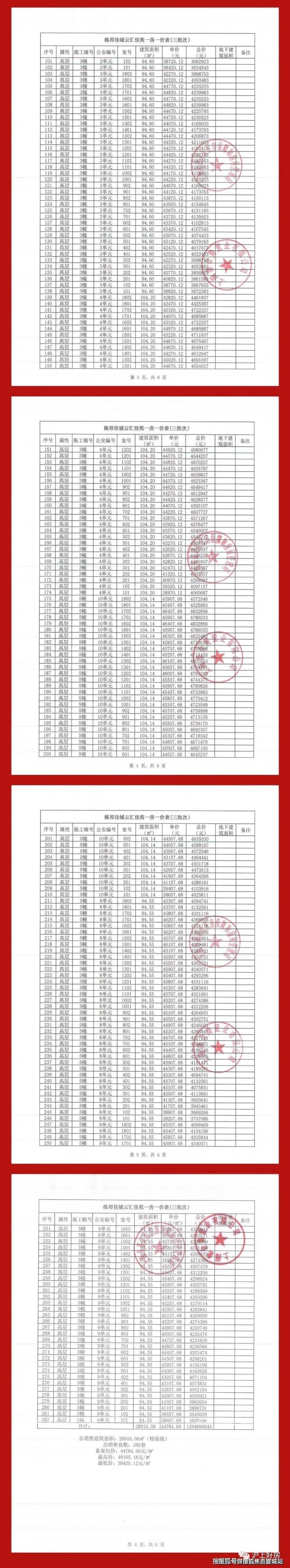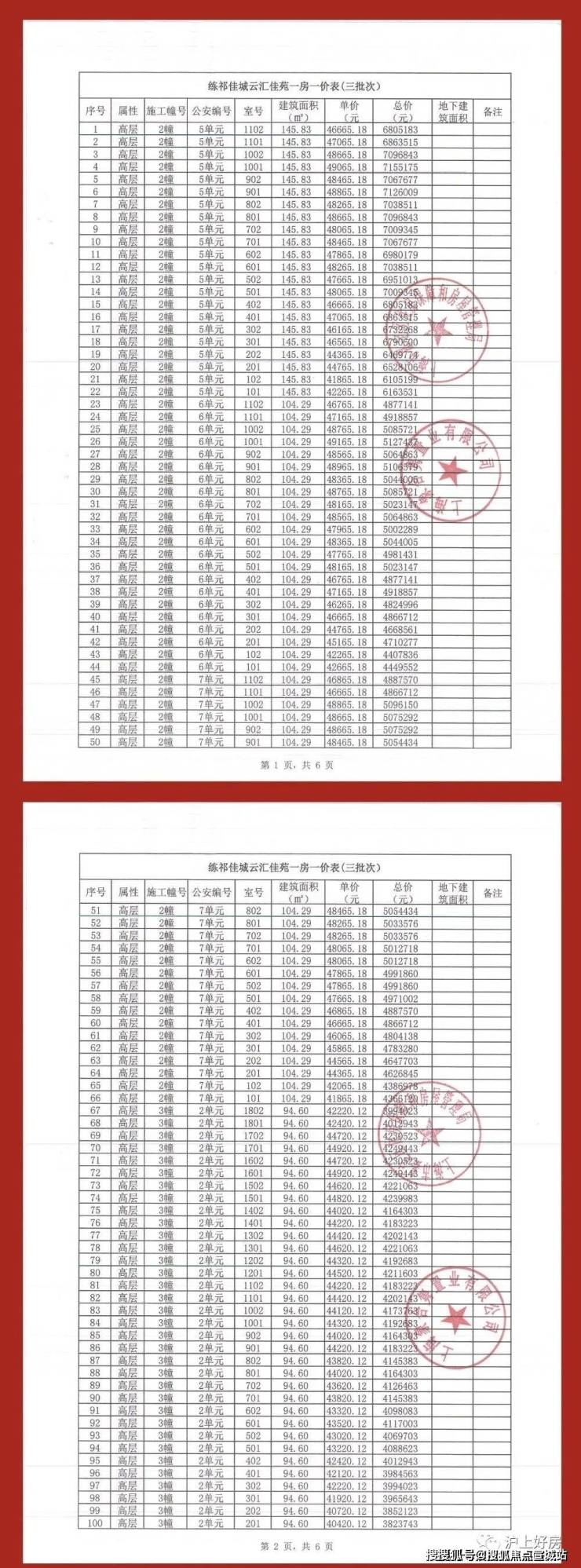 附一房一价表:
