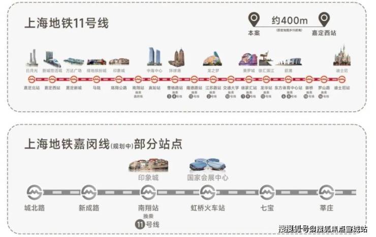交通配套方面:项目距离轨道交通11号线嘉定西站直线400米左右,附近还有嘉定客运中心,交通便捷。另外,项目临近沪宜公路、距离沈海高速约1.5公里,上海绕城高速约3.5公里,自驾出行也十分便捷。