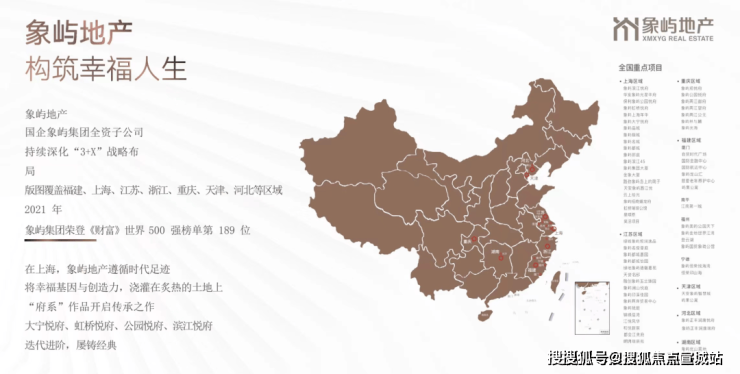 象屿地产集团,是财富世界500强、大型国企象屿集团的全资子公司。多年来,公司荣获“中国房地产百强企业”、“中国房地产开发企业稳健经营10强”、“中国华东房地产公司品牌价值TOP10”等多项荣誉,打造了象屿大宁悦府、象屿滨江悦府、蟠龙府等高品质项目,口碑受到社会的广泛认可。