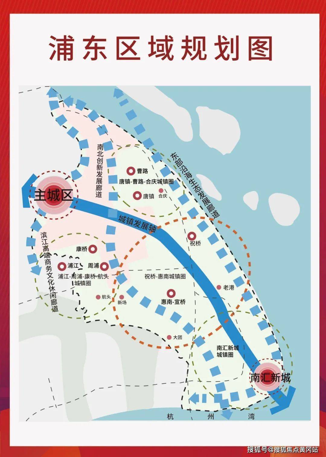 浦东2035总规在城镇圈板规划板块,画出了祝桥-惠南城镇圈作为综合发展型城镇圈。描述如下:以浦东国际空港、铁路上海东站为核心载体,着重建设功能完备、国际一流的现代化大型综合交通枢纽;依托自贸区建设,重点加强国际航运、贸易、物流、展示等功能。统筹配置高等级公共服务设施,加强生态宜居功能,强化交通网络支撑,全面打造公共服务完善、环境品质良好的产城融合发展新范本。
