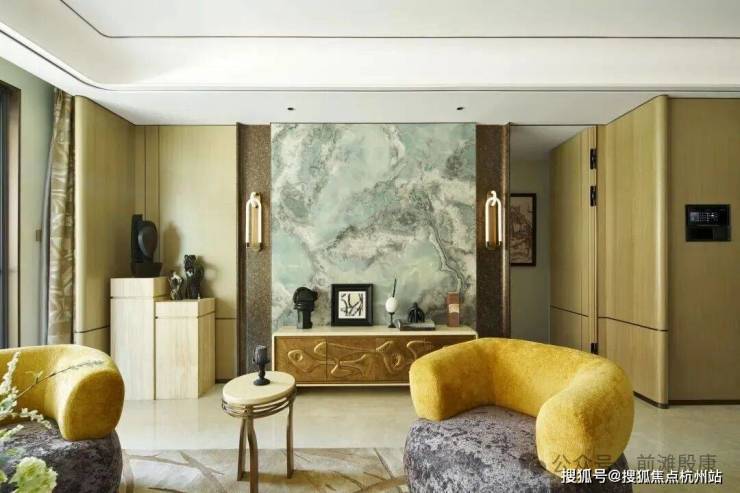 装标方面,整体设计主打一个老钱风,在吊顶和墙面用大量弧线造型取代冰冷的直角,配色和奢石的搭配都体现出低调的奢华感。