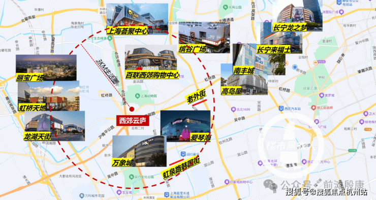 周边3公里生活圈里,往北是宜家开发的上海荟聚中心(2024年开业),人气十足焕新开业的西郊百联(2023年开业);往南是老牌的万象城和爱琴海,还有虹梅路老外街、金汇韩国街;往西的虹桥天地和龙湖天街都是巨无霸级的新兴商业中心。