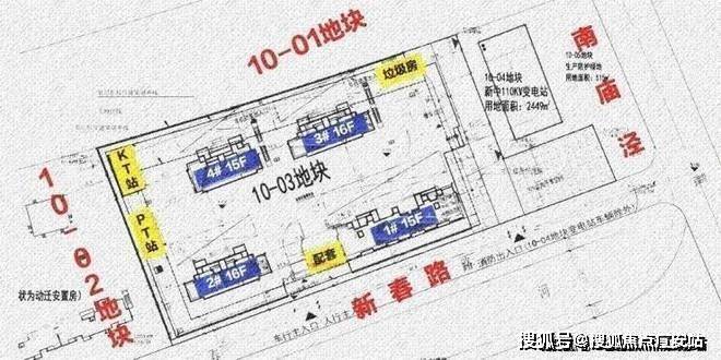 10-03地块:拟建2栋15F高层住宅、2栋16F高层住宅、以及若干配套用房。