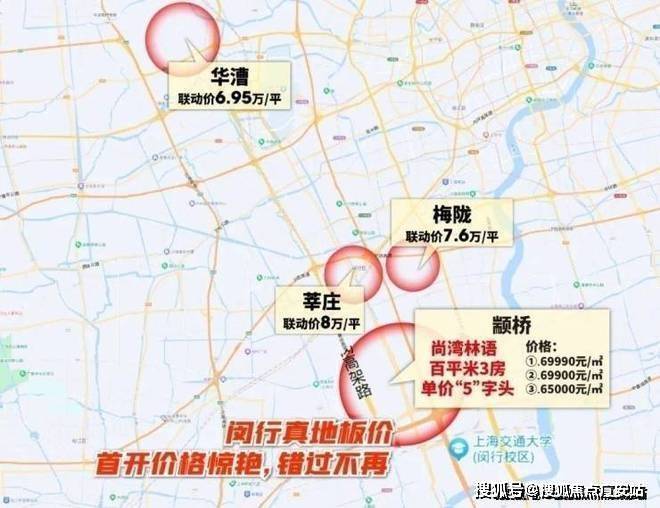 在整个闵行,莘庄新房8万/㎡、梅陇绿城7.6万/㎡、保利颛桥6.5万/㎡,华漕近7万/㎡,相比之下,尚湾林语百平米3房均价“5”字头堪称闵行地板价,性价比神盘。