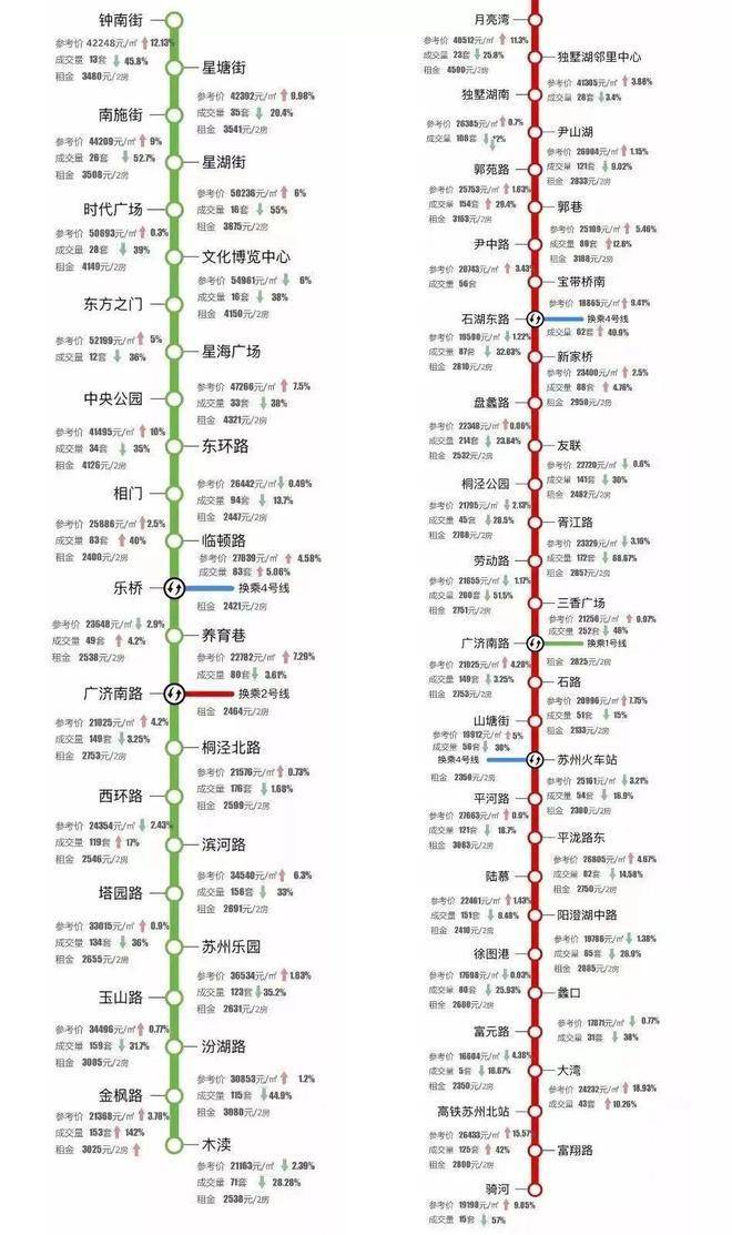 地铁还被称为黄金经济线,其经济效应也被人们所熟知。纵观苏州已开通的地铁,对房价的影响不可谓不大。1号线开通后,沿线房价5年内整体涨幅超66.37%,2号线南北向开通,1年内涨幅就超60%。4号线作为苏州南北发展的重要轴线,未来也将对沿线区域产生影响。