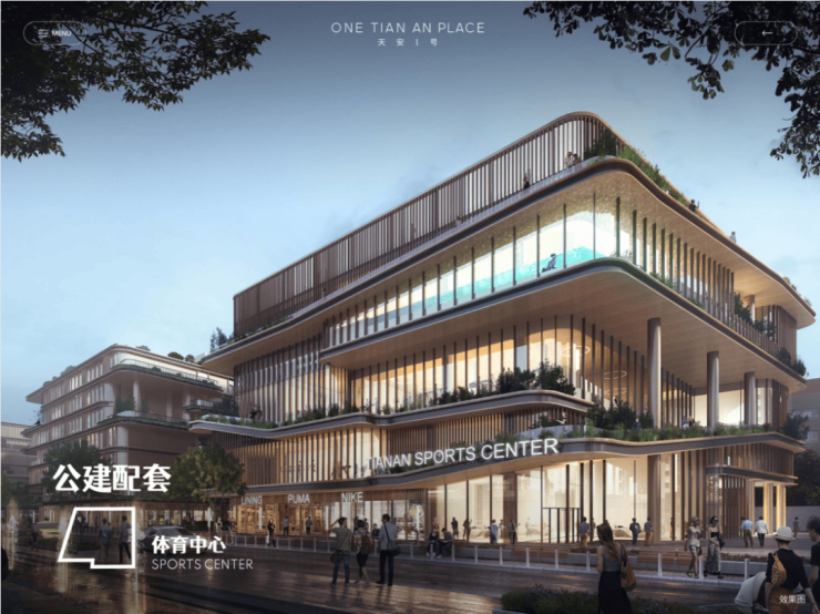 除了C区组团会以及另外两个组团会所,天安1号更在B组中,有一个约5000m²下沉式中央会所,涵盖泳池、图书馆等社交功能场所,从能级与配套来看远超过当下。