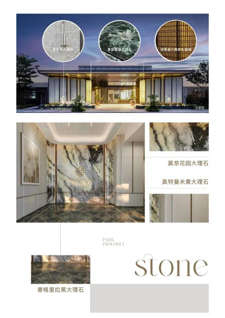 项目不惜成本,严选十余种珍贵奢石与臻质材料,外立面、门庭、公区、车库、室内等多重空间,皆以奢材精心雕琢。