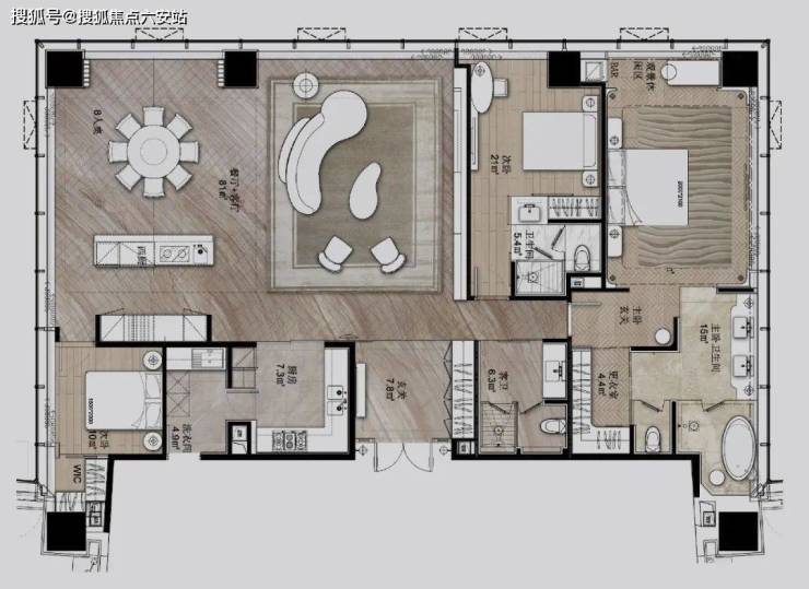 同时也以90万方超级综合体,成为杭州目前规划中体量最大的城市综合体,“写字楼+酒店+公寓+大平层+商业街区”业态齐聚,于一线江岸云端,叙写潮奢精神的时代宣言。