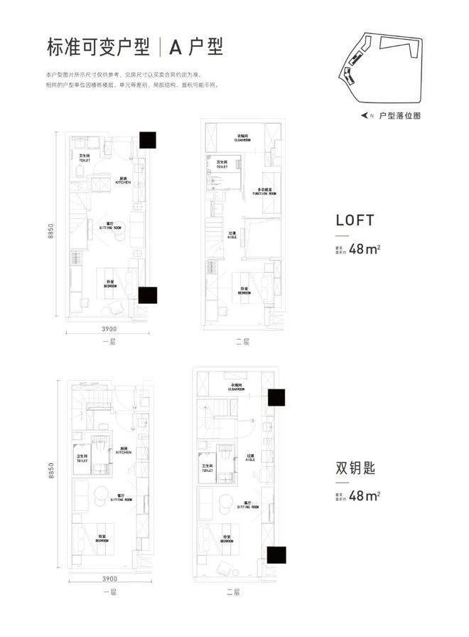 室内户型:平层、LOFT、双钥匙