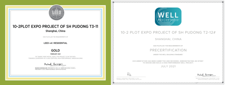 项目同时斩获亚洲首个住宅项目LEED v4.1金级预认证(10#、11#、12#)与美国WELL金级(全球首个关注人体健康的建筑认证)预认证,要知道,能够同时获这两项认证的建筑在“节能”和“健康”这两大主题上都具有极高标准,可能很多人不知道这认证的含金量,随便举几个有单项认证的例子: