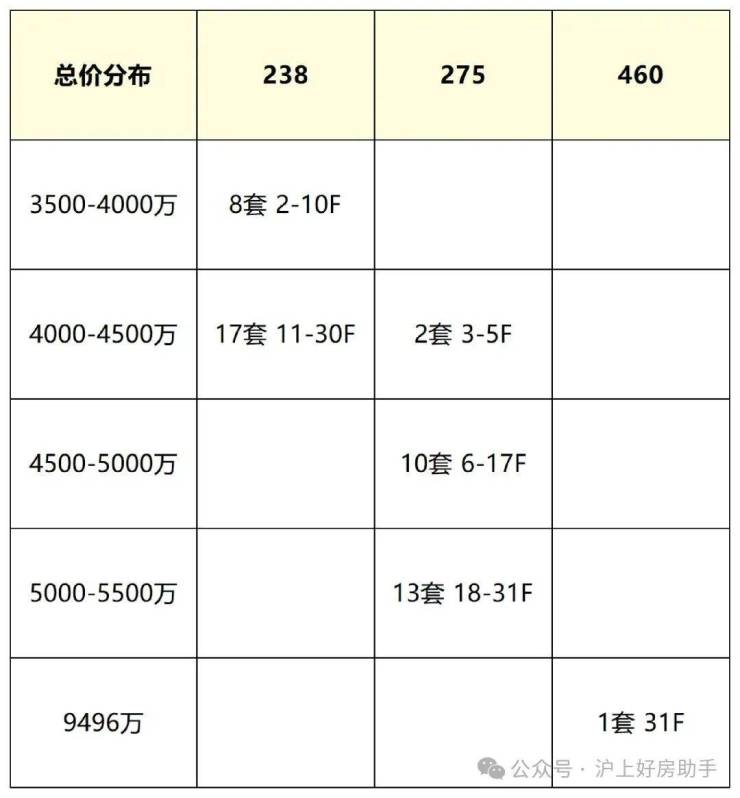 总价方面,3500-4000万的房源有8套,4000-5000万的房源足足有29套,4000万级预算买家上车的概率非常高!