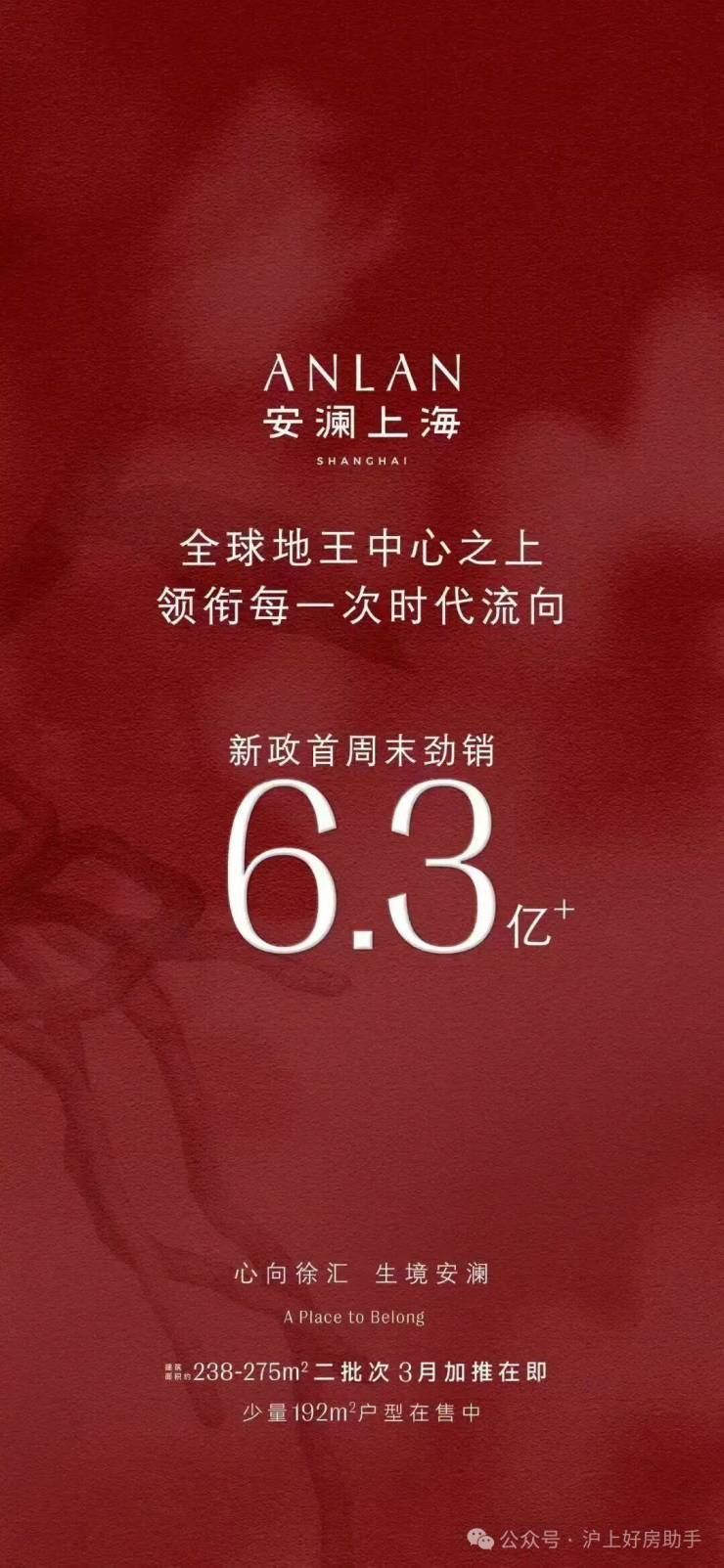 最新消息:徐汇滨江顶豪【安澜上海】二批次已过会,加推3号楼,仅51套建面约238/275㎡大平层,均价17.91万/㎡;认购率高达118%,三批次即将加推,样板间开放中,线上提前预约!