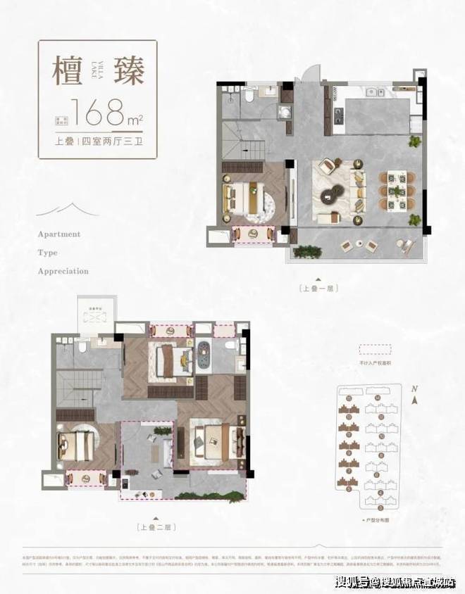 (3#5#7#9#11#13#小叠)上叠建面:168平,四房两厅三卫(送13.5平露台)