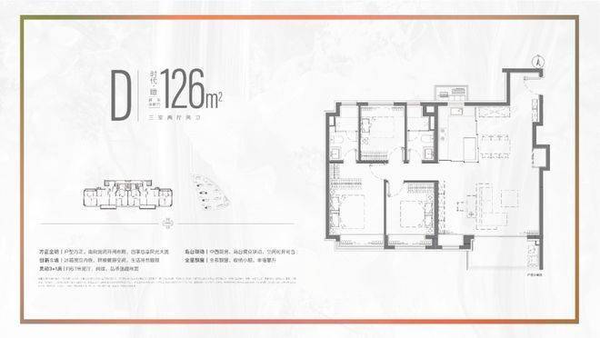 126㎡四房:6.8米横厅+双阳台,得房率90%。
