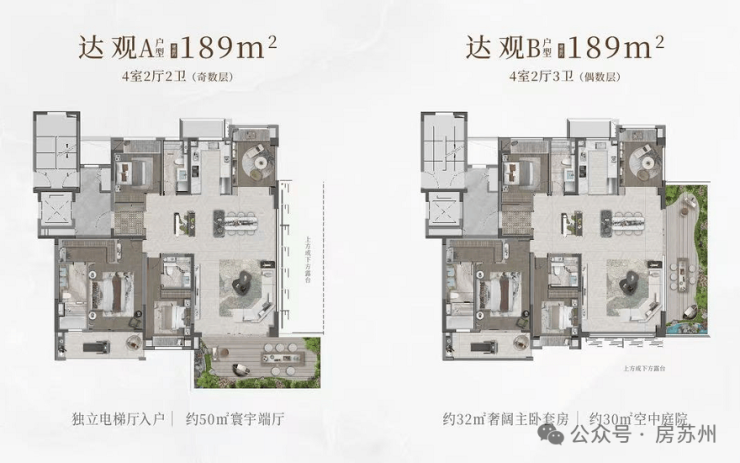 部分户型如下,洋房约145㎡,四代宅洋房约189㎡,叠墅约220-325㎡。