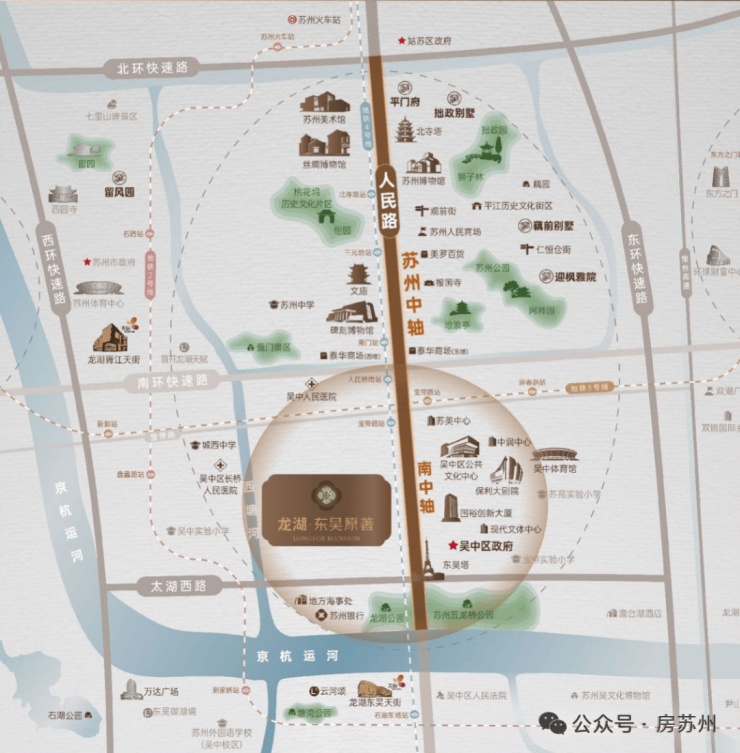 周边地铁2/3/4号线环绕,吴中万达、东吴龙湖天街也在不远处,一路之隔还是吴中区政府,无可争议的核心地段。