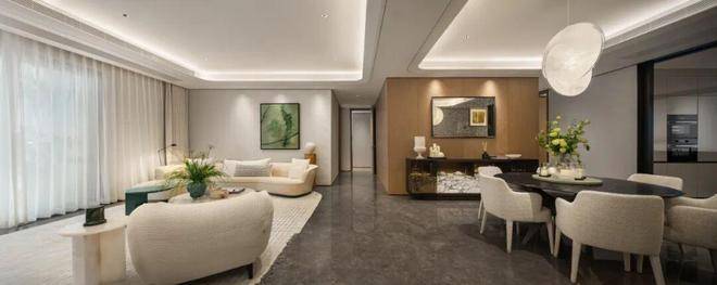 硬装层面,选用天然石材、实木饰面、金属型材等高品质基础材料,通过简洁有力的设计语言进行整合。