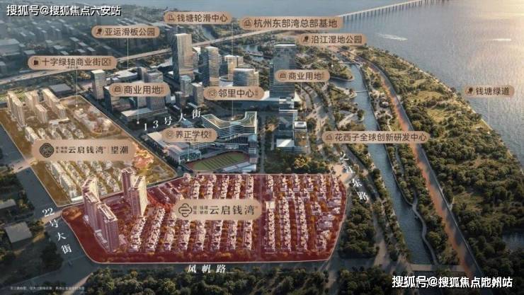 建发·云启钱湾·望潮位于杭州钱塘区东部湾新城的核心区域——金沙嘴,是钱塘江城区内的最后一湾,也是东部湾新城三大核心组团之一,片区定位为总部经济为基础的都市CBD,未来将形成企业总部、住宅、商业、公园等超级业态群,是钱塘区重点发展的标志性区域。