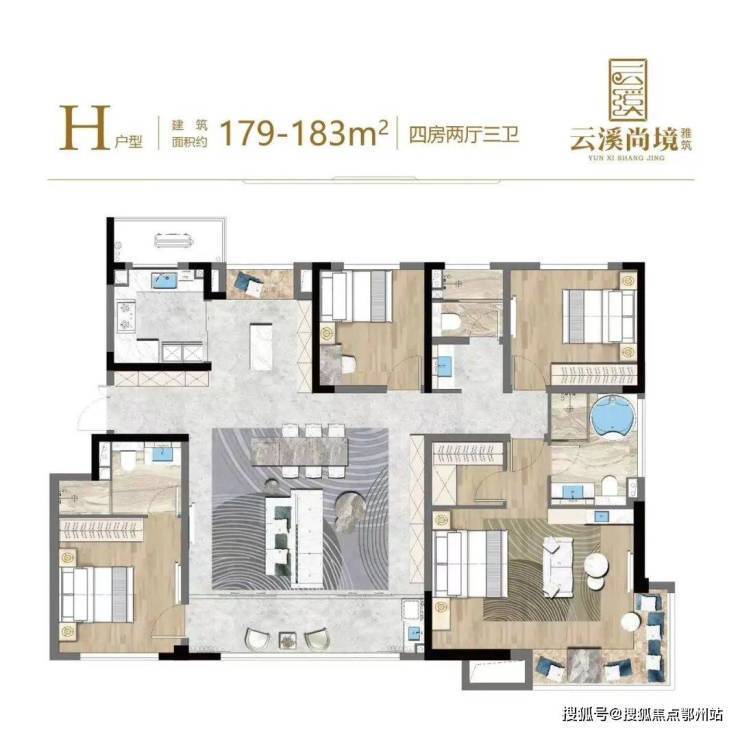 179㎡4房2厅3卫户型——近15.7米超大面宽,三代同堂毫无压力