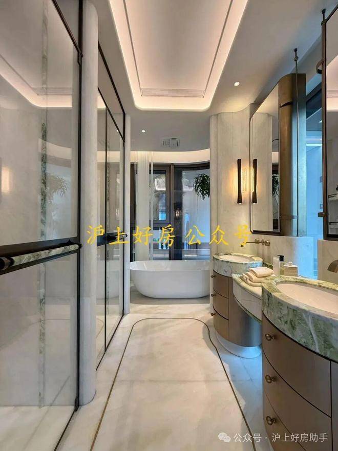 比如这个建面约238㎡户型,采用环幕设计,将徐汇滨江城市景观、下沉庭院等自然与人文景观尽收眼底,营造沉浸式居住体验。