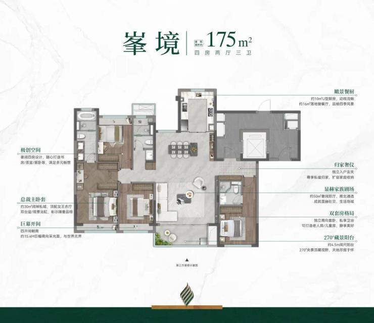 约175㎡户型占据社区央座楼王观景位,享环瞰社区的视觉特权,全盘仅此28席房源,真正的售完即无。