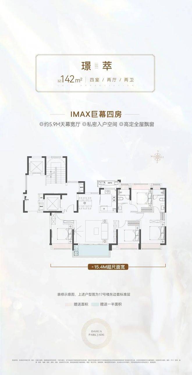 真正一步到位的改善型4房产品,大横厅的设计,四开间朝南+大横厅,约15.4米的南向面宽堪比别墅。