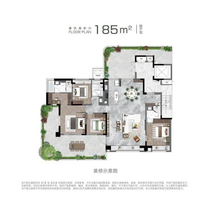 户型配置: 约150㎡、185㎡、220㎡,户均约33-77㎡空中庭院
