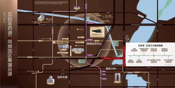未来环商圈以“未来环天桥”为链接,集聚近百万方级醇熟商业群、几乎相当于整个园区湖西CBD的商业地标总量。以全新的运营理念,成就苏州主城的超级商圈极核。蠡棠森屿位于其核心辐射区,近享优渥配套,更与城市势能共融共进。