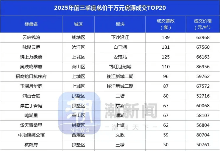以一己之力,让下沙东部湾新城金沙嘴CBD成为了钱塘江岸新晋豪宅板块,并创下了钱塘区网签价记录,在2025年前三季度总价千万级住宅成交榜上稳居榜首!