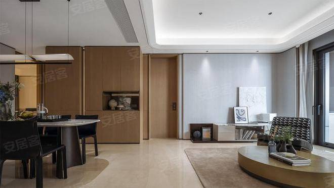 层高3.3m,市面罕见!层高每高20-30公分,享受到的视野空间都更阔绰。在此基础上,所有空间的门都做了通顶设计,其圆弧造型做到约2.6米门扇!