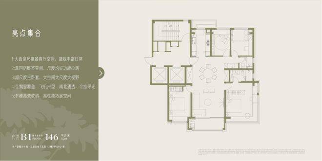 4. 双王牌户型 精准匹配改善需求:本次加推的104㎡千万级绝版三房与146㎡真四房,直击改善家庭痛点。104㎡三房以千万级总价门槛,成为入主核心商务区的稀缺机会;146㎡真四房以三开间朝南的奢阔客厅尺度,碾压同面积段竞品,适配多孩家庭或三代同堂需求。