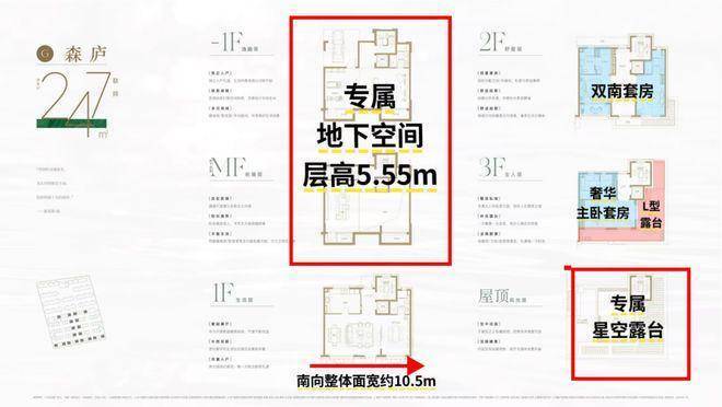 2F南向双套房,3F为独立套房,整体面宽约6.9米,并附赠L型观景露台!此外还赠送星空露台,夜晚观星、赏景都非常惬意。