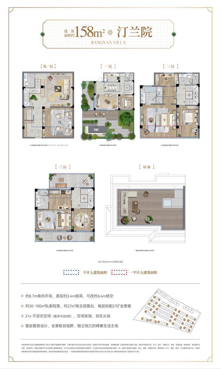 联排别墅:建面133-158㎡,首层挑空3.4米,总价268万起,得房率超245%