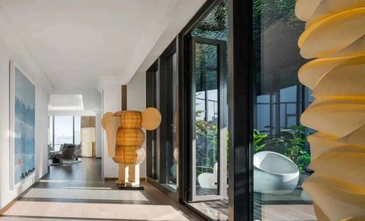 这是为美术生打造的270度环幕江景大平层,高楼层赋予的辽阔视野,江景成为空间的天然背景。