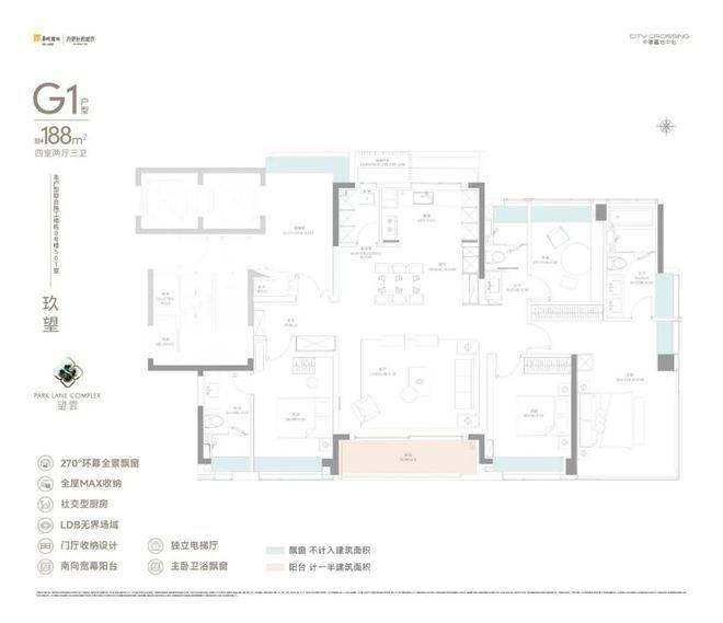 电梯厅全明通透+类一梯一户设计,满足大户型业主对于入户私密性的生活需求。此外还增加两处优秀设计:多飘窗和惊艳的MAX收纳尺度。