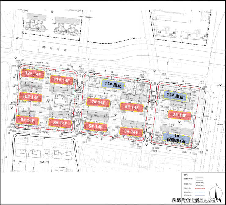 根据规划设计方案显示,项目拟建11幢14F住宅(含1幢保障房)、以及商业、配套用房等建筑。